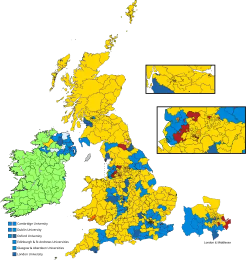 | Conservative Party und Liberale Unionisten | 2.278.076 | 43,4 | −6,8 | 156 | −246 | |