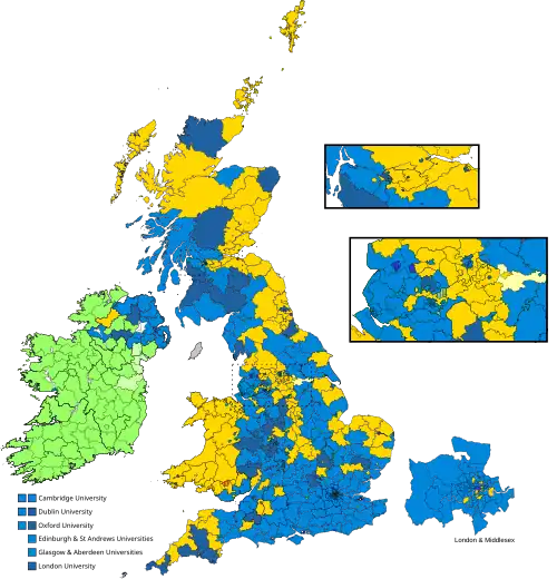 | Conservative Party und Liberale Unionisten | 1.637.683 | 50,2 | +1,0 | 402 | −9 | |