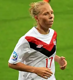 Ihr erstes A-Länderspiel machte sie mit 16 Jahren am 9. April 2002 beim 2:3 gegen Japan. Zu dem Zeitpunkt war sie die zweitjüngste Nationalspielerin Kanadas. Mit der kanadischen Fußballnationalmannschaft belegte sie bei der Fußball-Weltmeisterschaft 2003 den vierten Platz. 2007 schied sie mit Kanada in der Vorrunde der WM aus. Bei den Olympischen Sommerspielen 2008 kam sie mit ihrer Mannschaft bis ins Viertelfinale. Dort verloren sie in der Verlängerung mit 1:2 gegen den späteren Turniersieger USA. Am 7. Juni 2011 machte sie als siebte kanadische Spielerin ihr 100. Länderspiel[2]. Sie war Mitglied des kanadischen Kaders für die WM und wurde im Eröffnungsspiel gegen Deutschland in der 80. Minute und damit zu ihrem achten WM-Spiel eingewechselt. Im zweiten Spiel gegen Frankreich stand sie in der Startelf, wurde aber in der 77. Minute beim Stand von 0:3 ausgewechselt (Endstand 0:4). Im letzten Spiel gegen Nigeria wurde sie nicht mehr eingesetzt.