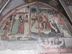 - Das Fresko der Geburt Jesu und Anbetung der Könige wurde abgenommen und befindet sich nun im Diözesanmuseum. Von der Anbetung der Könige sind noch die Vorzeichnungslinien zu sehen. Dafür sind zuvor verdeckte Fresken aus dem 14. Jahrhundert sichtbar geworden, die in Rötelzeichnung das Martyrium der Heiligen Christina zeigen.