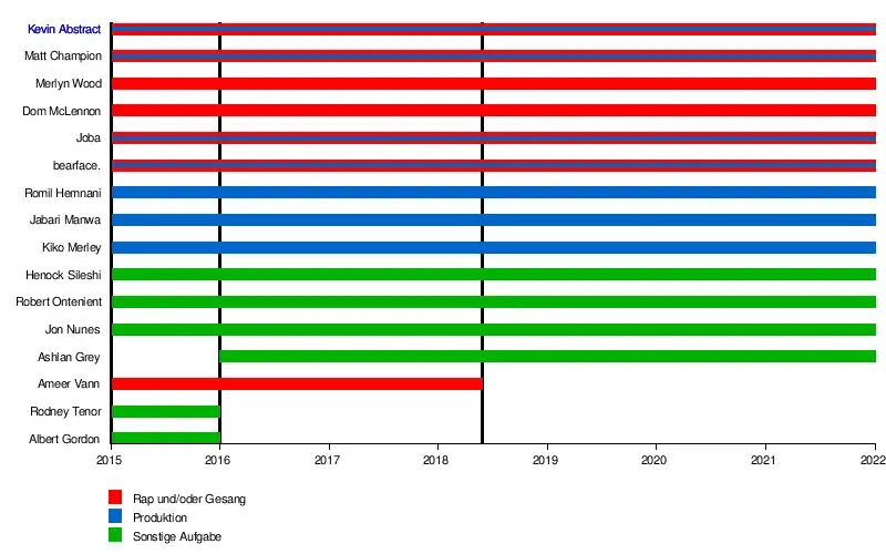 | Kevin Abstract (Clifford Ian Simpson) | Corpus Christi | Rap, Gesang, Produktion |