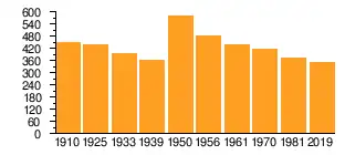 | Jahr | 1910 | 1925 | 1933 | 1939 | 1950 | 1956 | 1961 | 1970 | 1981 | 2019 |