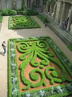 Es handelt sich dabei um eine Ornamentik aus niedrig geschnittenen Strauchhecken, vor allem Buchs-Hecken. Motive sind hauptsächlich Laubwerk und Bandelwerk, seltener Monogramme und figürliche Darstellungen.