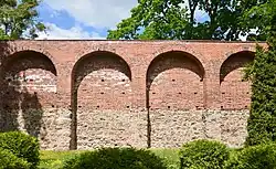 - Von der ebenfalls in der ersten Hälfte des 14. Jahrhunderts errichteten Stadtbefestigung sind neben Mauerresten das Kulmer Tor mit einem backsteingotischen Stufengiebel (heute Galerie für zeitgenössische Kunst) und der Storchenturm erhalten