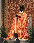 An hohen kirchlichen Festen wird die Statue in päpstliche Gewänder gehüllt und mit einer Tiara bekrönt.