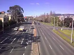 - ↑ Zwischen der Davey Street und Cleary's Gates auf dem Kamm der Hügelkette heißt der Highway auch Brooker Avenue.