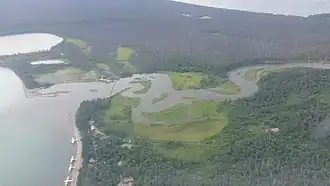 ![]() Blick von Norden auf die Mündung; links unten das Brooks Camp | ||