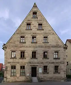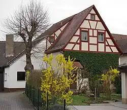 - Ein weiterer Herrensitz befand sich daneben, in der Fürther Straße 36. Er war bis 1417 im Besitz des Hans Remar/Reymar zu Buckenhof und wechselte im 15. Jahrhundert häufig den Besitzer. Als der Sitz 1548 an den Nürnberger Patrizier Sigmund Pfinzing d. Ä. veräußert wurde, zog der Markgraf nach einem Prozess das Mannlehen 1561 ein, da die Veräußerung an einen einflussreichen Nürnberger Ratsherren ohne seine Zustimmung erfolgt war. Die seinerzeit als baufällig bezeichnete Liegenschaft wurde ab 1562 vom Markgraftum als Erbzinslehen vergeben. Ab 1600 folgten jüdische Besitzer, die das im Dreißigjährigen Krieg niedergebrannte Haus wieder aufbauten und teilweise auch als Synagoge nutzten. 1876 wurde es an einen Büttnermeister verkauft, der es unter weitgehenden Bestandsverlusten umbaute. In der jüngsten Zeit wurde das Haus erneut stark verändert, doch blieb dabei der vermutlich frühneuzeitliche Keller mit einer Mikwe des 16. oder 17. Jahrhunderts erhalten.[14]