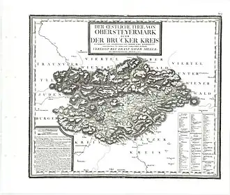 Seit Ende des 15. Jahrhunderts hatte die Steiermark fünf[1] Viertel gezählt, hier das Viertel enhalb der Piberalm (Brucker Viertel; Judenburg/Murtal, Enns- und Mürztal, mit Kammertal).
