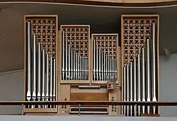 1977 wurde die heutige Orgel durch die Firma Orgelbau Genf AG errichtet. Sie löste ein elektronisches Instrument der Firma Honegger, Zürich, ab.[4] Die Orgel umfasst 17 Register auf zwei Manualen und Pedal. 2015 erfolgte eine Revision durch den Orgelbauer Emmenegger, Nenzlingen.[5]