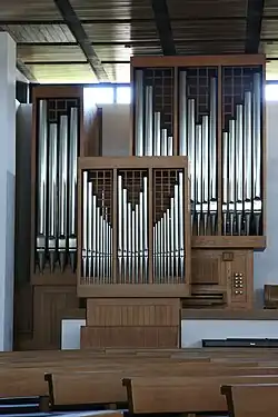 Die Kirche erhielt zunächst eine Interimsorgel von Hans Späth, Rapperswil SG. Dieses Instrument wurde 1975 nach Zuckenriet versetzt. Ihre heutige Orgel bekam die Kirche im Jahr 1975. Gefertigt wurde sie von Eugen Hauser aus Schmerikon. Es handelt sich um ein Instrument mit 19 Registern, das auf einem etwas erhöhten Platz im rückwärtigen Raum der Kirche aufgestellt wurde. Die rechteckigen und quadratischen Formen des Kirchenraumes werden vom Orgelprospekt aufgenommen. Das in Eichenholz gefertigte Gehäuse gruppiert die Register in ein Rückpositiv, ein Haupt- sowie ein Pedalwerk. Bei einer Revision im Jahr 1995 wurden einige Register überarbeitet.[4] Die Disposition lautet:[5]