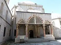 - ↑ Çağatay Uluçay: Mustafa Sultan. In: İslâm Ansiklopedisi. Bd. 8, Millî Eğitim Basımevi, Istanbul 1979, S. 690–692, hier: S. 691; Şerafettin Turan: Mustafa Çelebi. In: Türkiye Diyanet Vakfı İslâm Ansiklopedisi. Bd. 31, Istanbul 2006, S. 290–292, hier: S. 291 (PDF-Datei; 2,7 MB); Ahmet Atilla Şentürk: Yahyâ Beğ’in Şehzade Mustafa Mersiyesi yahut Kanunî Hicviyesi. Timaş Yayınları, Istanbul 2009, ISBN 978-975-263-953-9, S. 73; Stéphane Yerasimos: Konstantinopel. Istanbuls historisches Erbe. Aus dem Französischen von Ursula Arnsperger u. a. Ullmann, Potsdam 2009, ISBN 978-3-8331-5585-7, S. 179.