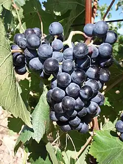 - Die walzenförmige Traube ist mittelgroß und dichtbeerig. Die rundlichen, nur leicht ovalen Beeren sind mittelgroß und von blau-schwarzer Farbe. Die Beeren sind nicht sehr saftig.