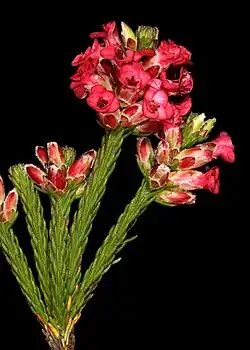 - ↑ a b c d Bruniaceae im Germplasm Resources Information Network (GRIN), USDA, ARS, National Genetic Resources Program. National Germplasm Resources Laboratory, Beltsville, Maryland.