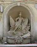 Wandbrunnen mit Relief und Becken aus Wöllersdorfer Stein | Georg Raphael Donner | 1741 | Perseus und Andromeda darstellendes Relief; die seitlichen Atlanten-Pfeiler tragen den darüber liegenden Balkon. |