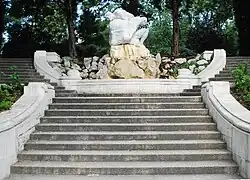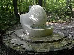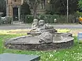 Steinbrunnen mit zwei sitzenden Figuren | In der Mitte des Parks | ||