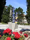 Brunnen mit Stahlskulpturen | Waltrud Viehböck | 1995 | Zwei separate Brunnenbecken, eines davon mit angrenzendem Pavillon. In und neben den Becken sind die Stahlskulpturen Neun Doppel-Ellipsen installiert. Mit der Umgestaltung der Wasserwelt 2017 weggefallen. |