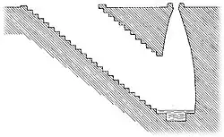- Typ Zyklopische Mauer. Der Bau ist aus nur grob zugearbeiteten Quadern erstellt.