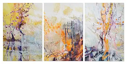 Die Grundstimmung der Bilder pendelt zwischen meditativer Ruhe und expressiven Gesten und Störungen. Das Flüchtige und Vergängliche, die Vermittlung von Landschaft als Erscheinung und Wechselspiel elementarer Kräfte, nimmt immer neue Gestalt an.