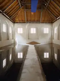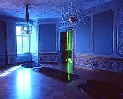 Angeregt durch die Namen „Grüner, Blauer und Roter Salon“ mit ihren entsprechenden Tapisserien, installierte er farbige Folien auf den Fenstern der Säle und kreiert eine Abfolge farbigen Lichts. Trotz aller Freiheiten, die im dreidimensionalen Raum herrschen – die formalen, ästhetischen und konzeptuellen Mittel seines installativen Werks haben deutliche Analogien zum malerischen Schaffen.