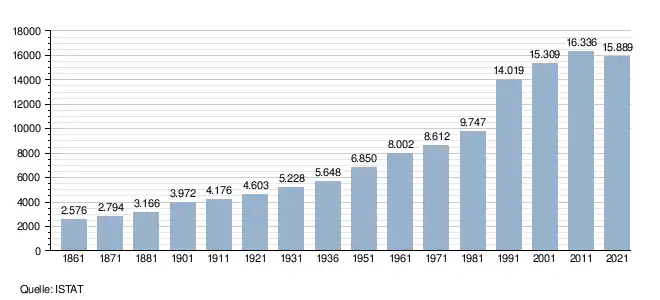 - ↑ Bilancio demografico e popolazione residente per sesso al 31 dicembre 2024. ISTAT. (Bevölkerungsstatistiken des Istituto Nazionale di Statistica, Stand 31. Dezember 2024).
