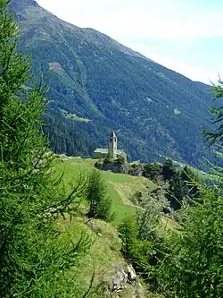 - Kirche San Romerio aus dem 11. / 16. Jahrhundert auf der Alpe San Romerio[16]