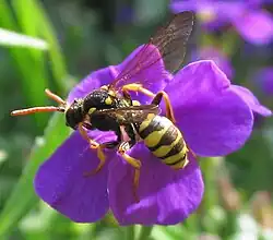 Unter den Insekten ist Brutparasitismus weit verbreitet. So sind zum Beispiel alle Wespenbienen (siehe auch Kuckucksbienen) und einige Wespenarten (Kuckuckswespen) obligate Brutparasiten. Wespenbienen, die auf Grund ihrer Brutbiologie auch Kuckucksbienen genannt werden, parasitieren vor allem Sandbienenarten. Da die meisten Wespenbienen wirtsspezifisch sind, kann eine starke Vermehrung dieser Insekten zum Zusammenbruch der Bestände der Wirtsart führen, was allerdings auch den lokalen Zusammenbruch der parasitären Art nach sich zieht. Auch unter den Schwebfliegen gibt es eine Reihe obligater Brutparasiten, so zum Beispiel (Volucella pellucens), die Hummel-Schwebfliege.