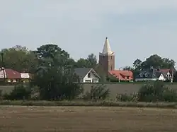- Die römisch-katholische Kirche St. Maria Rosenkranz (polnisch Kościół Najświętszej Maryi Panny Różańcowej) ist eine gotische Saalkirche aus dem 14. Jahrhundert. Während der Reformation wurde sie den Protestanten übergeben, die das Gotteshaus bis 1945 genutzt haben. Nach dem Übergang an Polen 1945 und einem Brand wurde die Kirche 1958–59 wiederaufgebaut.[7] Die Kirche steht seit 1964 unter Denkmalschutz.[8]