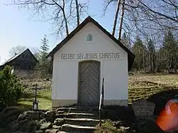 - Kapelle des hl. Michael, die 1891 errichtete Hofkapelle eines landwirtschaftlichen Anwesens fiel 1956 der Zerstörung des Dorfes mit zum Opfer.[6] Nach der Grenzöffnung wurde sie wieder errichtet und am 4. Oktober 1992 eingeweiht. Nach der Wende wurde in Finsterau eine fast baugleiche Kapelle wie in Bučina errichtet, welche 1991 eingeweiht wurde. Sie steht ca. 150 m südlich der Kirche in Finsterau, also Richtung Heinrichsbrunn auf einer Anhöhe.
