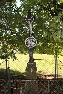 - Gusseisernes Kreuz auf dem Dorfplatz, errichtet 1897