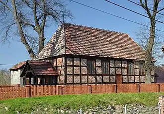 Die heutige Dorfkirche ist ein schlichtes rechteckiges Fachwerkgebäude, das aus dem 18. Jahrhundert stammt. Ende des 19. Jahrhunderts wird sie „ohne baulichen Wert“ befunden, mit Ausstattungsgegenständen „von einfachster Art“. Die Glocken sollen die Jahreszahl 1500 bzw. 1622 getragen haben.