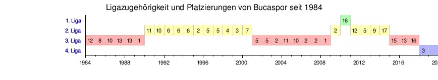 In seiner ersten Zweitligasaison gewann die Mannschaft unter der Leitung von Erkan Velioğlu die ersten fünf Spiele. Man gab der Mannschaft den Spitznamen Fırtına (dt: Sturm). In den Jahren 1994 und 1996 verpassten man knapp den Aufstieg in die Süper Lig. Die Saison 2008/09 schloss Bucaspor als Erster der TFF 2. Lig ab und stieg in die TFF 1. Lig auf.