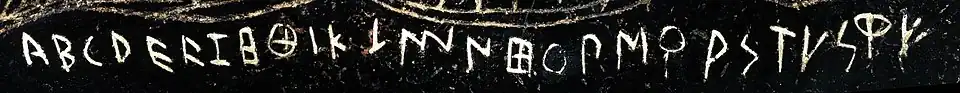 Dem Schreiber ist bei der Niederschrift der Buchstaben vermutlich ein Fehler unterlaufen, da der Buchstabe S zweimal auftritt, an Position 21 und an Position 24. Andere Abecedarien aus dieser Zeit zeigen an Position 24 dagegen den Buchstaben X, sodass ein Schreibfehler naheliegt. Erfahrungsgemäß lässt sich der Anfang eines Alphabets besser memorieren als der Schluss.