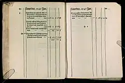 - ↑ Eine weitere Beschreibung der einfachen Buchhaltung findet sich in: Erhart von Ellenbogen: Buchhalten auff preussische Münze und gewichte, vormals nie gesehen, also behende und offenbar gesetzet, das es ein jder […] Josef Klug, Wittenberg 1537 (bibliotekaelblaska.pl).