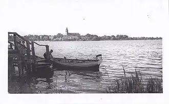 - 1884–1905 Carl Krüger, Sohn des vormaligen Holzvogt war vorher Forstarbeiter und Amtskutscher.[16][22] In der Goldberger Zeitung war zu lesen: Mit militärischen Ehren wurde heute am 26. August 1905 unser alter biederer Fährmann, der Holzvogt C. Krüger aus dem Buchholz hier bestattet. Der Goldberger Kriegerverein begleitete die Leiche schon von Goldberg aus und die Schützenabteilung gab hier die drei Salven über das Grab. Krüger war Veteran aus den Feldzügen 1866 und 1870/71. Seinen besonders im Winter recht einsamen Warteposten im schönen Buchholz versah er 22 Jahre mit seltener Pflichttreue. Die große Beteiligung aus dem Kloster und dem Ort Dobbertin bei der Beerdigung war ein Beweis von der allgemeinen Beachtung, welcher sich der Verstorbene erfreute.