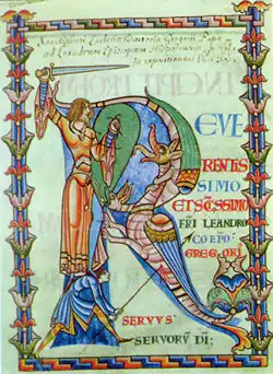- ↑ a b c Gereon Becht-Jördens: Litterae illuminatae. Zur Geschichte eines literarischen Formtyps in Fulda, in: Gangolf Schrimpf (Hrsg.): Kloster Fulda in der Welt der Karolinger und Ottonen (Fuldaer Studien 7). Josef Knecht, Frankfurt am Main 1996, S. 325–364. ISBN 3-7820-0707-7