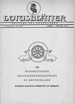 Den Beginn der Lotusblätter im Jahr 1987 hat Sylvia Wetzel ausführlich in Buddhismus aktuell Ausgabe 4/2017 beschrieben.[1] Der Anfang dieser buddhistischen Zeitschrift gestaltete sich herausfordernd, weil die DBU ein Dachverband von buddhistischen Gemeinschaften vieler verschiedener Traditionen ist, die sich zunächst nur schwer auf eine gemeinsame Linie verständigen konnten. Durch das Engagement von Sylvia Wetzel, Thomas Geist, Dieter Bünker (heute Lama Öser Bünker)[2] und der bedeutenden ideellen und finanziellen Unterstützung durch Karl Schmied konnten die Lotusblätter 1987 starten und dem Buddhismus in Deutschland in seiner Einheit und Vielfalt ein publizistisches Gesicht geben.
