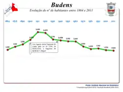 - ↑ a b Informationsblatt zur Gemeinde Budens der Kreisverwaltung Vila do Bispo (pdf-Abruf), abgerufen am 26. März 2016