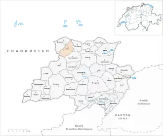 Die Fläche des 8,2 km² grossen ehemaligen Gemeindegebiets umfasst im Zentralteil die 300 bis 400 m breite, von der Allaine durchflossene Talniederung, in die bei Buix von Südwesten das Trockental La Grande Valle mündet. Beidseits des Allaine-Tals reicht die Gemeindefläche auf die teilweise bewaldeten Höhen des Tafeljuras, im Norden bis auf den Mont Renaud (506 m ü. M.), im Südwesten auf den Recet und den Neu Bois (mit 543 m ü. M. die höchste Erhebung der Gemeinde) und im Süden auf den Sollery (526 m ü. M.). Von der Gemeindefläche entfielen 1997 6 % auf Siedlungen, 50 % auf Wald und Gehölze und 44 % auf Landwirtschaft.