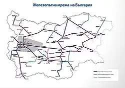 Das bulgarische Eisenbahnnetz ist verbunden mit den Eisenbahnen Serbiens, Rumäniens, der Türkei und Griechenlands.[1]