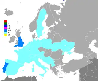 • Höchste Niederlagen in Gruppenspielen: Bulgarien – Schweden (2004), Belgien – Frankreich (1984) und Jugoslawien – Dänemark (1984) – alle 0:5