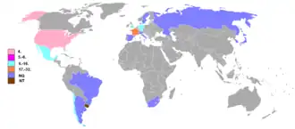 | Jahr (Spiele) | Anzahl (Länder) | Spieler (Einsätze) |