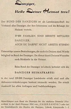 Unter den Heimatvertriebenen gehörten die Danziger zu den ersten, die sich organisierten.