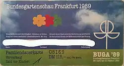 Die Bundesgartenschau 1989 (kurz BUGA 1989, auch BUGA ‘89) fand vom 28. April bis zum 15. Oktober 1989 in Frankfurt am Main statt.[1]