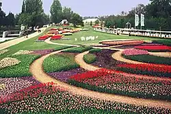- ↑ Ein Vorbild dekonstruktivistischer Parkgestaltung ist der 1982 durch Bernard Tschumi entworfene Parc de la Villette in Paris. Die Schau der Gärten war stark durch ihn inspiriert.