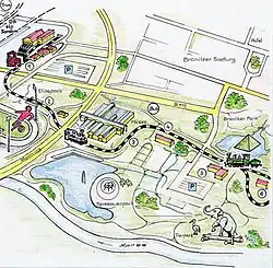 - ↑ Die Geschichte der Cottbuser Parkbahn auf deren Homepage ( des vom 7. Juli 2017 im Internet Archive) Info: Der Archivlink wurde automatisch eingesetzt und noch nicht geprüft. Bitte prüfe Original- und Archivlink gemäß Anleitung und entferne dann diesen Hinweis., abgerufen am 28. Mai 2017.