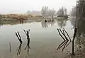 Typisch für Auengebiete ist das Zusammenspiel mit Gewässern. Diese Gebiete müssen ständig, periodisch oder episodisch überflutet werden, damit sich neue Lebensräume bilden können. Auch Laichgebiete für Amphibien und Flachmoorvegetation sind Teil dieser Lebensräume. 17 % der Auenflächen werden von Amphibienlaichgebieten eingenommen und 5 % der Auenflächen von Flachmooren.[29]