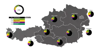 | Stimmen | 2.644.034 63,4 % | 566.551 13,6 % | 464.625 11,1 % | |||||||||||