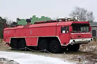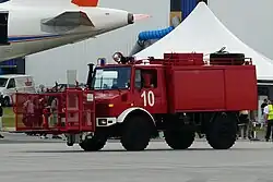 Außerdem gibt es noch das Feuerlösch-Kraftfahrzeug leicht, Flugplatz (FlKfz Leicht), ein zweiachsiger allradangetriebener Scania P 380 CB EHZ mit Aufbauten von Rosenbauer. Das 19 t Fahrzeug kann 2.800 l Wasser mitführen[18].