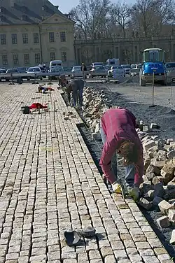 | Pflasterer- und Steinsetzerhandwerk: Weitergabe, Bewahrung und Förderung von Wissen und Techniken | 2022 | Länderübergreifend | Das Pflasterer- und Steinsetzer Handwerk kann in Deutschland bis in das 11. Jahrhundert zurückverfolgt werden. Es wurde historisch insbesondere für repräsentative Zwecke verwendet, für Straßen, Plätze, Schlosshöfe und Alleen. In den letzten Jahren nimmt die Pflasterung aufgrund seiner ökologischen Vorteile gegenüber der Asphaltierung wieder zu. Die Qualität einer Pflasterung hängt dabei von der sach- und fachgerechten Durchführung ab, wobei das handwerkliche Wissen, die Erfahrungen und die Kreativität der Pflasternden von immenser Bedeutung sind. unesco.de | |